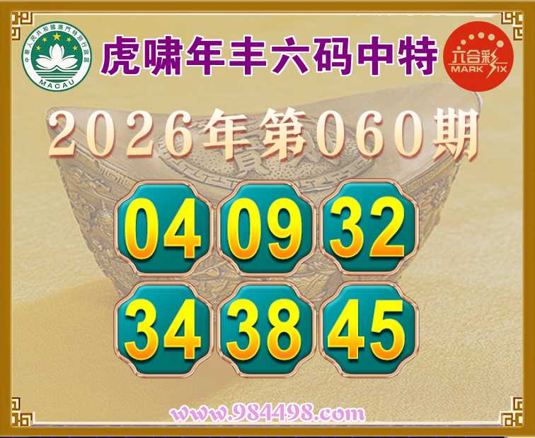 060期:『虎啸年丰』 六码中特【04.09.32.34.38.45】开:09准上榜高手