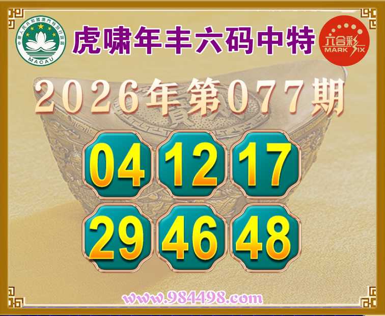 077期:『虎啸年丰』 六码中特【04.12.17.29.46.48】开:29准上榜高手
