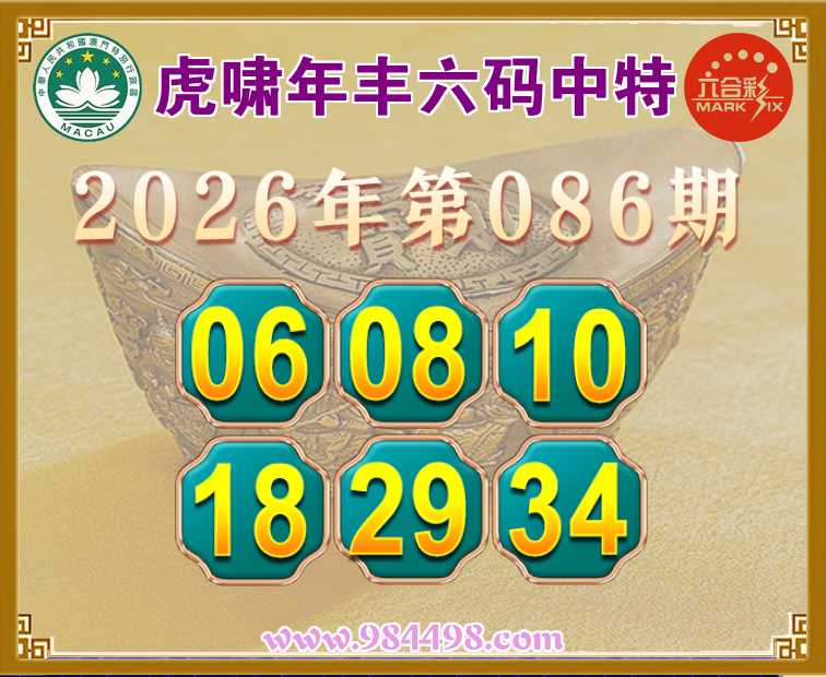 086期:『虎啸年丰』 六码中特【06.08.10.18.29.34】开:12