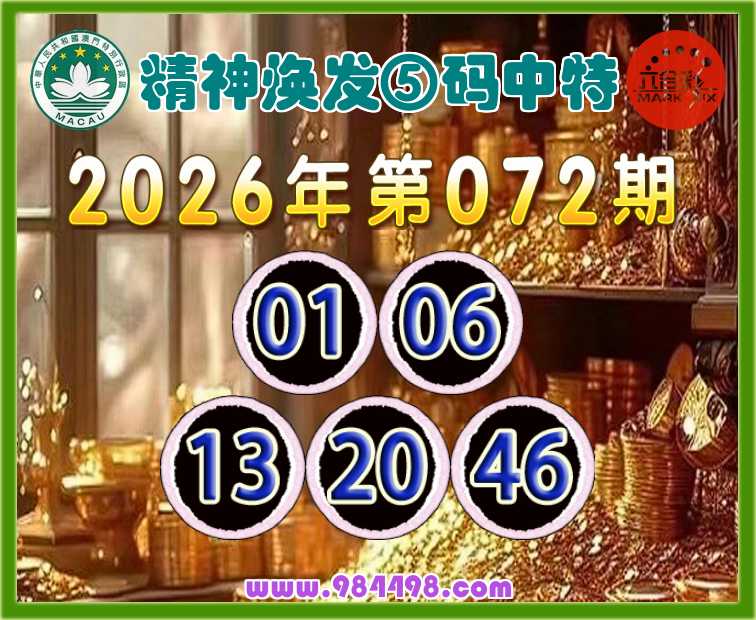 072期:【精神焕发】 ⑤码中特【01.06.13.20.46】开:46准上榜高手