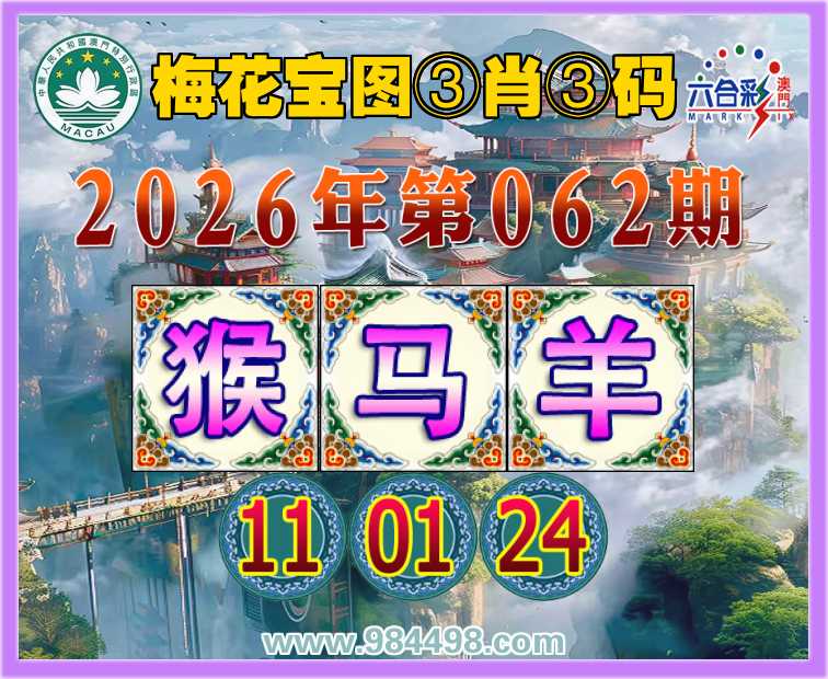 062期: 『梅花宝图』 ③肖③码【猴马】【11.01.24】开:羊24准上榜高手