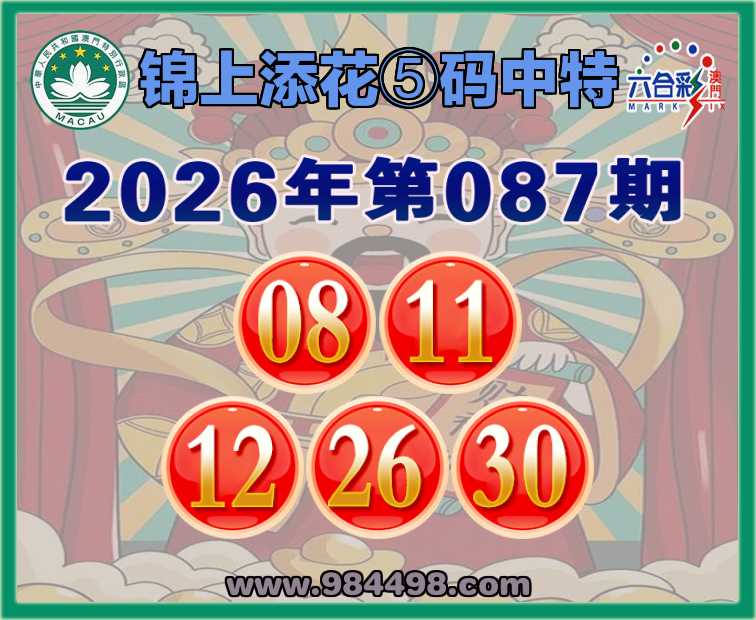 087期:【锦上添花】 ⑤码中特【08.11.12.26.30】开:00准